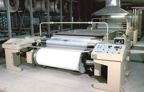 (3)、非织造布:将松散的纤维经粘合或缝合而成。目前主要采用粘合和穿刺两种方法。用这种加工方法可大大地简化工艺过程,降低成本,提高劳动生产率,具有广阔的发展前途。
