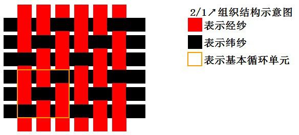 斜纹:经组织点(或纬组织点)连续成斜线的组织称为斜纹组织。